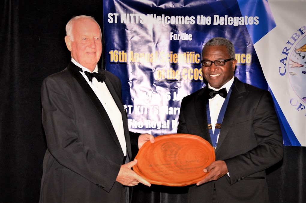 Basseterre, St. Kitts, June 20, 2018 (SKNIS): At an awards banquet at the St. Kitts Marriott Resort, held as part of the 16th Annual Scientific Conference of the Caribbean College of Surgeons (CCOS), on June 15, two well-known surgeons were honored for their outstanding contribution to the field of Medicine.