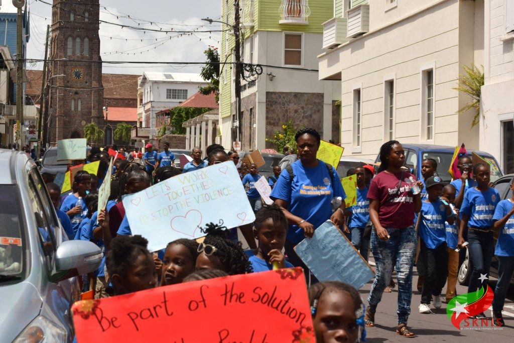 Basseterre, St. Kitts, August 03, 2018 (SKNIS):Positive messages such as “Love is Power; With Our Love We Can Save the World; No Guns for Me; and Peace, Love, Live; were portrayed to onlookers in Basseterre during Friday’s (August 03) street march by more than 400 young people in St. Kitts.