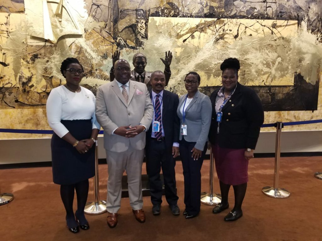 Following his participation in the UN Security Council meeting, the St. Kitts and Nevis delegation of Prime Minister Harris; Permanent Secretary in the Office of the Prime Minister, Mr. Osbert DeSuza; Senior Foreign Service Officer/Counselor at the Permanent Mission of St. Kitts and Nevis to the United Nations, Ms. Ghislaine Williams; Director in the Office of the Prime Minister, Ms. Chelesa Rawlins, and Officer at the Permanent Mission of St. Kitts and Nevis, Ms. Asha DeSuza visited the recently unveiled Nelson Mandela statue at the UN Headquarters.