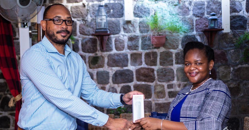 2020-2021, Deniece Alleyne, presented the thermometers on behalf of the