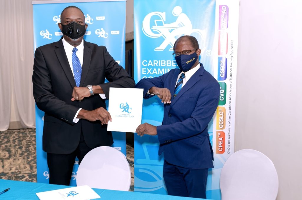 Photo Caption: Dr Wayne Wesley, Registrar and CEO, CXC® and Professor Colin Gyles, Acting President of UTech, Jamaica, with the newly signed MOU