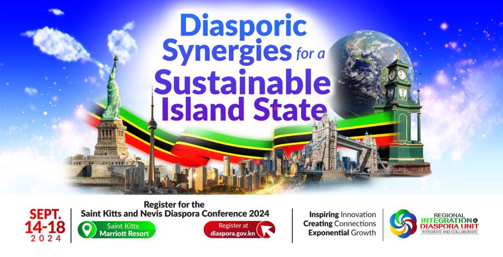 The Second Saint Kitts and Nevis Diaspora Conference will be held under the theme “Diasporic Synergies for a Sustainable Island State.” Hundreds of nationals and descendants will interact during three days of discussion on the role the Diaspora can play in achieving sustainability in Healthcare, Entrepreneurship, Investment, Culture, and Youth Development through the creation of an expanded Diaspora policy.