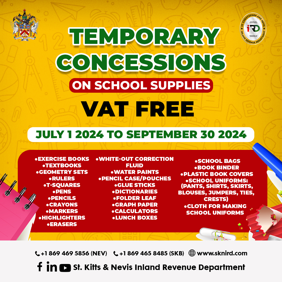 St. Kitts and Nevis Inland Revenue Department, Basseterre, St. Kitts, July 12, 2024: Instructions for Taxpayers on Filing VAT Returns during the concession period, or the tax periods of July, August and September 2024.
