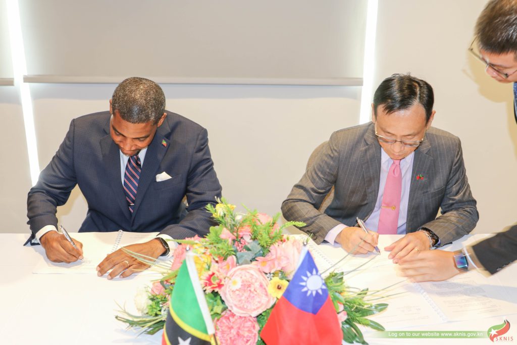 Prime Minister and Minister of Health, the Honourable Dr. Terrance Drew signed the agreement with Resident Ambassador of the Republic of China (Taiwan) to the Federation, His Excellency Michael Lin.