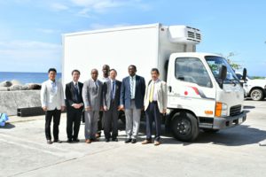 The Honorable Minister Eugene Hamilton, Minister of Marine Resources et al., made remarks thanking the Government of Japan for the contribution to this sector. Minister Hamilton commented “Partnership between JICA and the Government and People of this twin island Federation always result in forward movement in the realm of sustainability and the continuity of the fishing industry. “