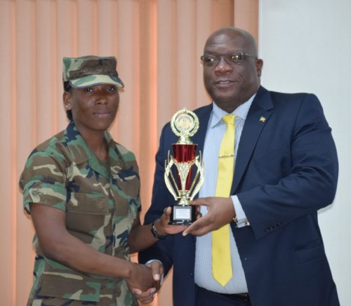 She also received an award for best at physical female. Special awards were also given to two other outstanding officers, namely, Police Constable Peter Jeremiah of the Royal Grenada Police Force for being the best at physical in males and to Police Constable Kerwin Thomas of the St. Christopher and Nevis Police Force for being the best at map reading.