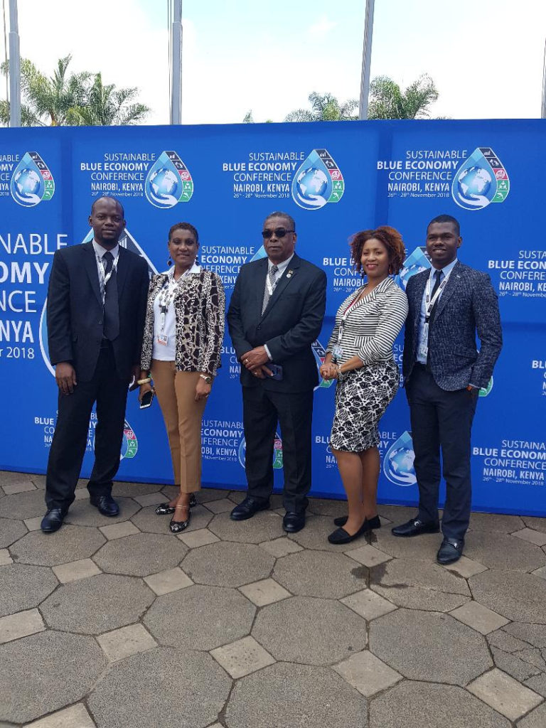 Nairobi, Kenya, November 27, 2018: Minister of Public Infrastructure, International Transport et al, the Honourable Ian Liburd is leading a delegation to the first global Sustainable Blue Economy Conference in Nairobi, Kenya from November 26 to 28. The Government officials supporting the Minister are Mrs. Carlene Henry-Morton (Permanent Secretary in the Ministry of Tourism), Mr. Marc Williams (Director of Marine Resources), Mr. Lemuel Pemberton (Director of Fisheries, Nevis), Mr. Sheldon Henry (Foreign Service Officer, Ministry of Foreign Affairs) and Ms. Tricia Greaux (Marine Management and Habitat Monitoring Officer, Department of Marine Resources).Within Minister Liburd’s speech at the Leader’s Commitment segment, he reaffirmed that the Government of the Federation of St. Kitts and Nevis is committed to develop the blue economy for benefit of the citizens. The Minister stated that the government has realigned the work programs of the marine institutions through legislative and policy support in order to meet the goals that it has set for the blue economy in providing economic opportunities for the people of the Federation for the foreseeable future. He stated that “It is imperative that we truly engage in economic diplomacy concerning the blue economy; as multilateral negotiations arise, we have to utilize different approaches and strategic thinking as small island developing states; assessing our priorities within the realm of realism and practicality; whilst, improving our practices and policies relating to oceans”.