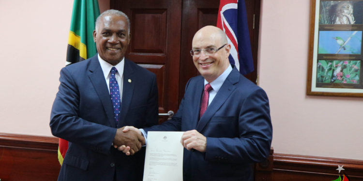 BASSETERRE, St. Kitts, January 28, 2020 (Press Unit in the Office of the Prime Minister) – High Commissioner-designate of Australia to St. Kitts and Nevis, His Excellency Bruce Lendon, paid a courtesy call on Senior Minister, the Honourable Vance Amory, on Monday, January 27, at which point he presented his credentials to the honourable minister.