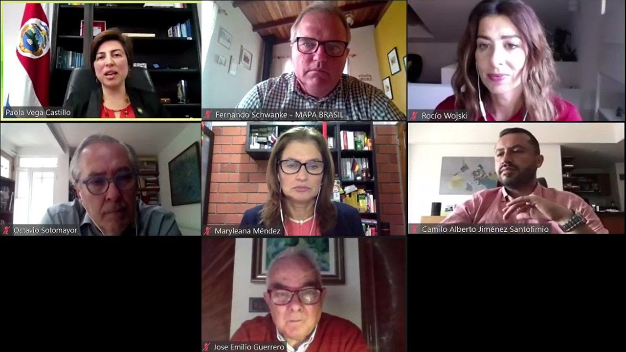 The panelists at the forum were the Minister of Science, Technology and Telecommunications of Costa Rica, Paola Vega; the Secretary of Family Farming and Cooperativism of Brazil’s Ministry of Agriculture, Livestock and Food Supply, Fernando Schwanke; Deputy Director General for Innovation and Digitalization of the Ministry of Agriculture, Fisheries and Food (MAPA) of Spain, Rocío Wojski; Economic Affairs Officer in the Agricultural Development and Biodiversity Unit at ECLAC, Octavio Sotomayor; Executive Director of the Inter-American Association of Telecommunication Enterprises (ASIET), Maryleana Méndez; Director of Infrastructure in the Ministry of Technology, Information and Communication of Colombia, Camilo Jiménez; and the Coordinator of the Inter-University Doctoral program in Agricultural, Food, Forestry and Sustainable Rural Development Engineering at the University of Córdoba, Spain, José Emilio Guerrero.