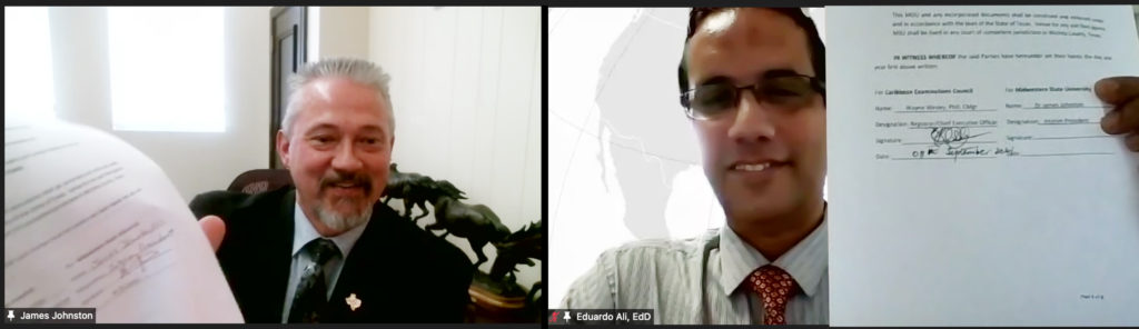 BRIDGETOWN, Barbados – The Caribbean Examinations Council (CXC®) continues to support examination candidates and build capacity through collaborative partnerships with international, higher education institutions. During a virtual ceremony on 8 September 2021, CXC® inked a Memorandum of Understanding with Midwestern State University (MSU Texas), to establish a formal basis of cooperation between the organisations in the field of education.