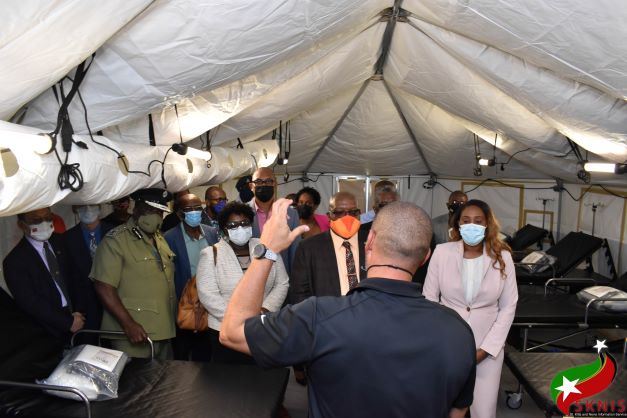 Basseterre, St. Kitts, October 14, 2021 (SKNIS): The arrival and subsequent assembling of two 40 bed field hospitals, one for St. Kitts, and the other for Nevis, is strictly a preventative measure as authorities seek to enhance resiliency in the health sector.