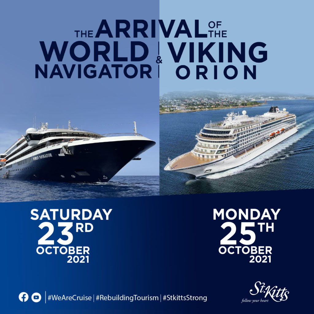 Please note that the World Navigator will berth at South Friar’s Bay on Saturday 23rd October, 2021 and the Viking Orion will berth at Port Zante on Monday 25th October, 2021.