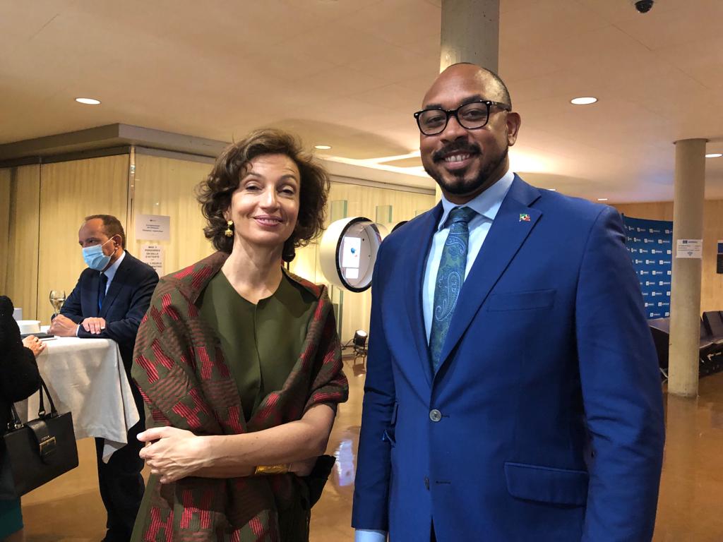 Paris, France, November 11, 2021:Barely twenty-four hours after arriving in Paris from the World Expo 2020 in Dubai, the Hon. Jonel Powell, Minister of Education, Youth Empowerment, Sport & Culture was delivering his speech at the 41st session of UNESCO General Conference, at which he made a robust call to the international community to accompany small island states in their quest to be heard on key challenges, greatly accentuated by the COVID-19 pandemic.