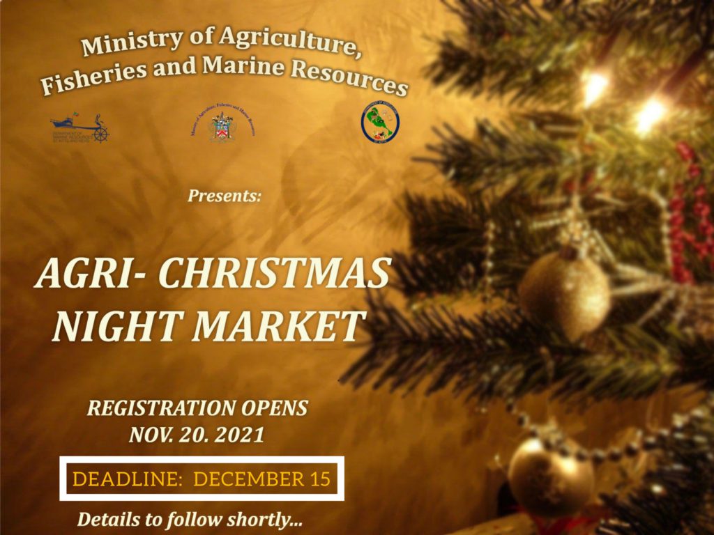 All fruit and vegetable vendors, meat producers, fishers, agro processors and cooked food vendors are being invited to sign up early and secure their spots for the Ministry of Agriculture, Fisheries and Marine Resources’ Agri-Christmas Night Market on Wednesday December 22 2021.