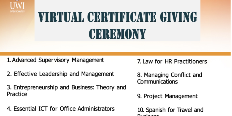 The UWI Open Campus St Kitts and Nevis, Wednesday, May 31, 2023 – The University of the West Indies (The UWI) Open Campus St Kitts and Nevis Site celebrated the professional development achievements of 189 individuals who completed short courses from January to May 2023 in a virtual certificate giving ceremony on May 24th.