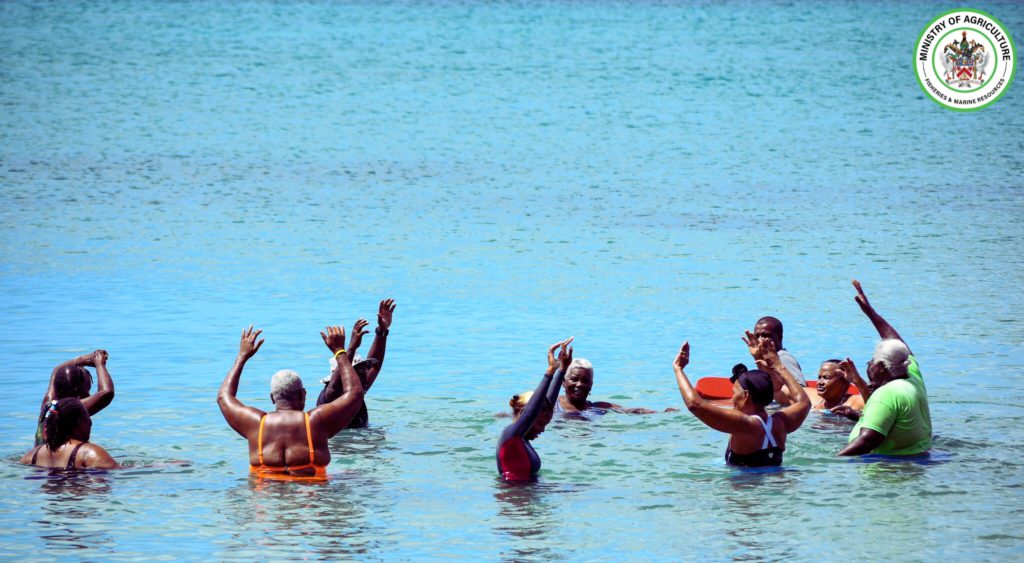 On Tuesday 15th October 2024, seniors from across St. Kitts gathered at Frigate Bay Beach for a special World Food Day event designed to promote ocean awareness and the importance of the sea as a vital source of food and nutrition. The initiative dubbed, “World Food Day Beach Aerobics” was held in collaboration with the Department of Marine Resources St. Kitts and Nevis and the Department of Youth Empowerment, Ageing, and Disabilities, aimed to empower older adults with knowledge about marine ecosystems while promoting healthy living through physical activity.