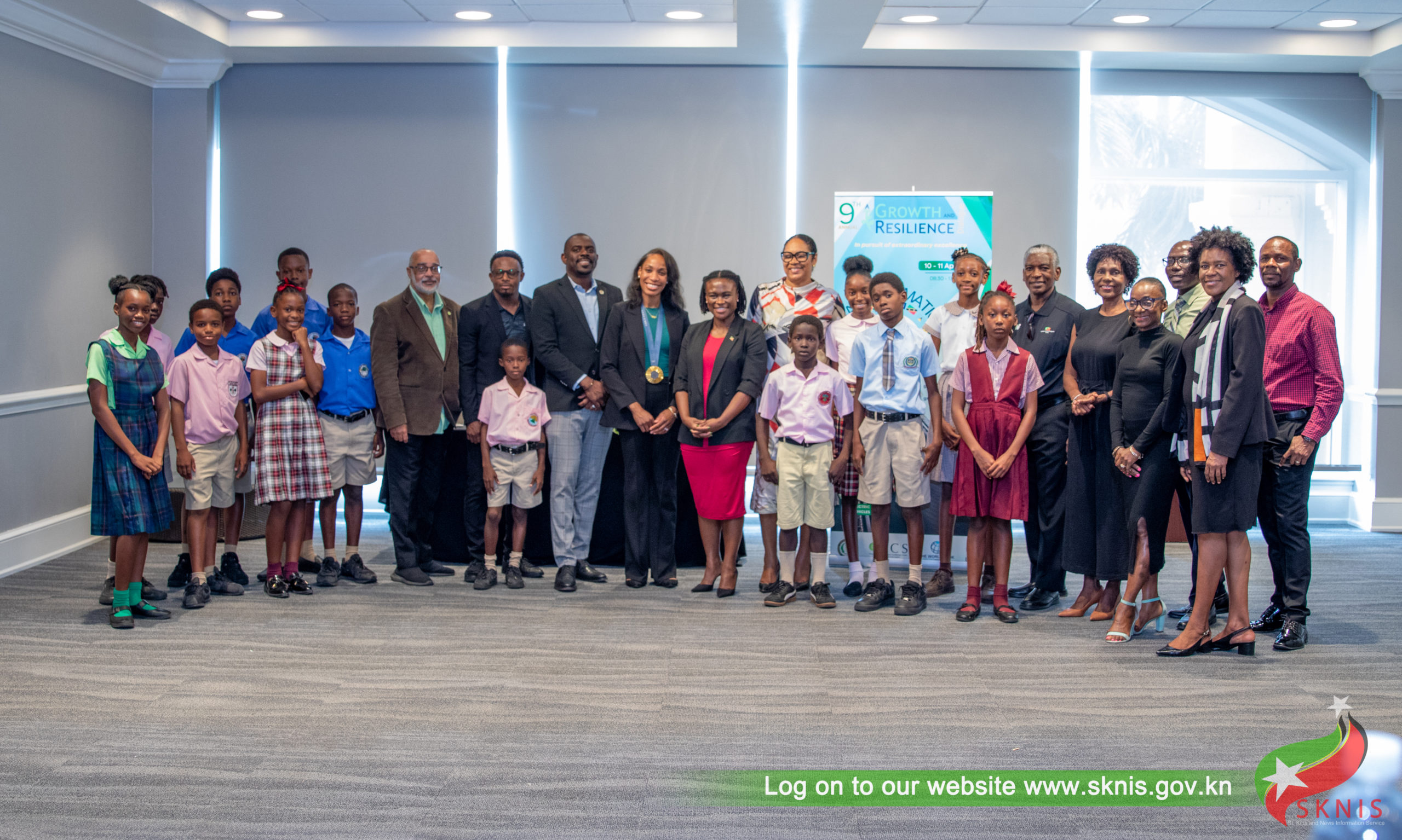 Government officials, members from the sporting fraternity, and students from various schools attended the cocktail to welcome the Olympian, who is in the Federation to participate in the Ninth Annual Growth and Resilience Dialogue hosted by the Eastern Caribbean Central Bank.