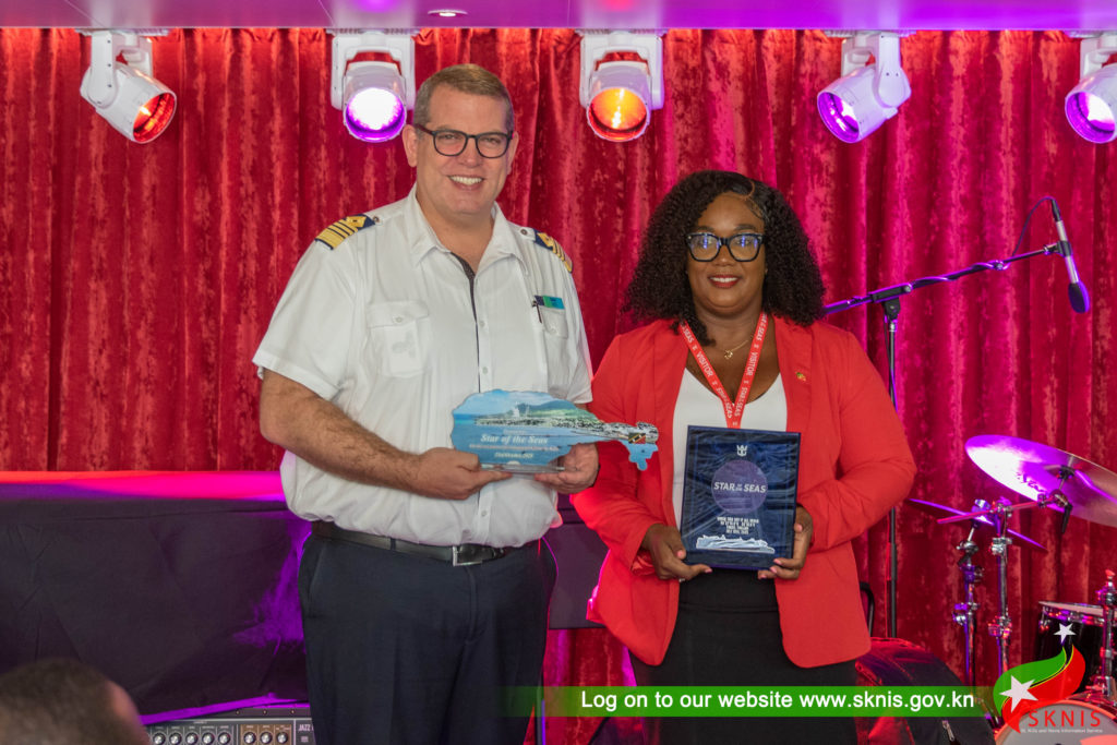 During an official plaque exchange ceremony at Port Zante on Thursday, October 23, 2025, to commemorate the ship’s inaugural call, Prime Minister Drew expressed immense pride in the milestone, describing it as a reflection of the Federation’s rising position as a premier tourism destination.
