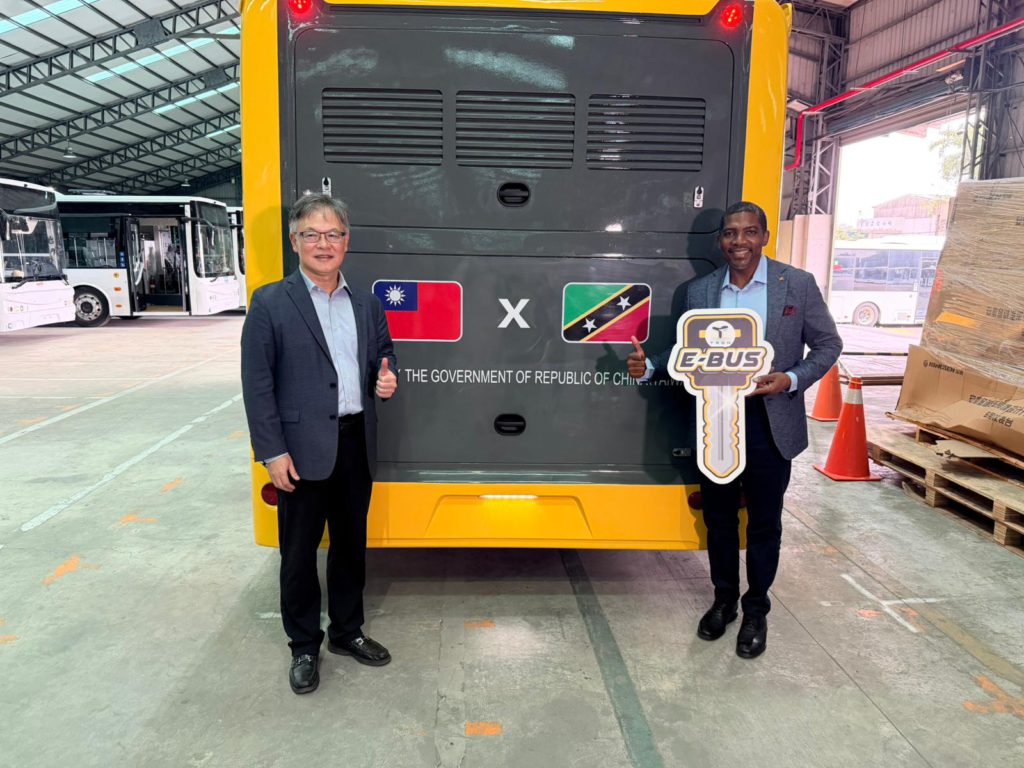 Prime Minister Drew and his delegation toured the vehicles on Monday, November 17, during their official visit to the Republic of China (Taiwan). The buses were subsequently handed over to the Government following discussions with the company’s President and Vice President, who reiterated Tron-E’s interest in deepening technical cooperation with the Federation.