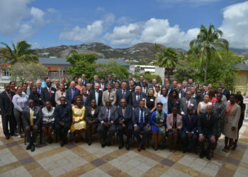 Prime Minister Dr. the Hon. Timothy Harris and Premier of Nevis the Honourable Mark Brantley pictured with members of the...
