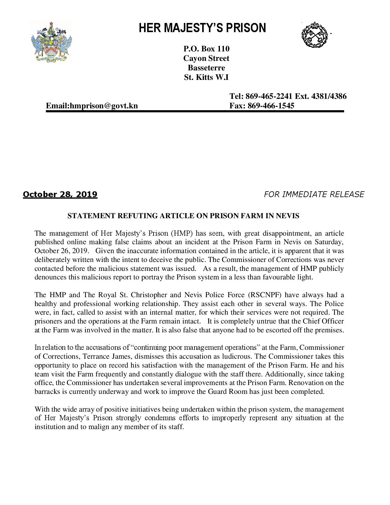 STATEMENT REFUTING ARTICLE ON PRISON FARM IN NEVIS-page-001